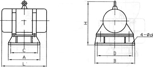 防閉塞裝置由振動電機(jī)、底座兩部分組成。振動電機(jī)和底座由螺栓緊密地固定為一體,由于底座堅(jiān)固地安裝在料倉壁上,這樣就構(gòu)成了單質(zhì)點(diǎn)定向強(qiáng)迫振動系統(tǒng)。