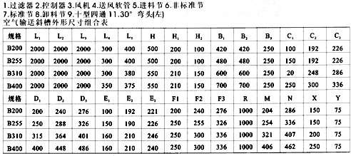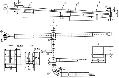 空氣斜槽輸送機由數個薄鋼制成的槽子聯接組成,并沿其輸送方向布置成一定的斜度??諝廨斔托辈鄄垠w沿著輸送方向安裝成向下傾斜4%~6%的斜度。