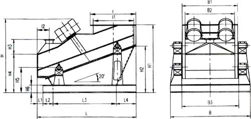 (1)ZSG系列單層篩外形及安裝尺寸。注:下圖為封閉式振動篩,敞開式無進料口、除塵口,亦無I、I1、I2、H3之尺寸。